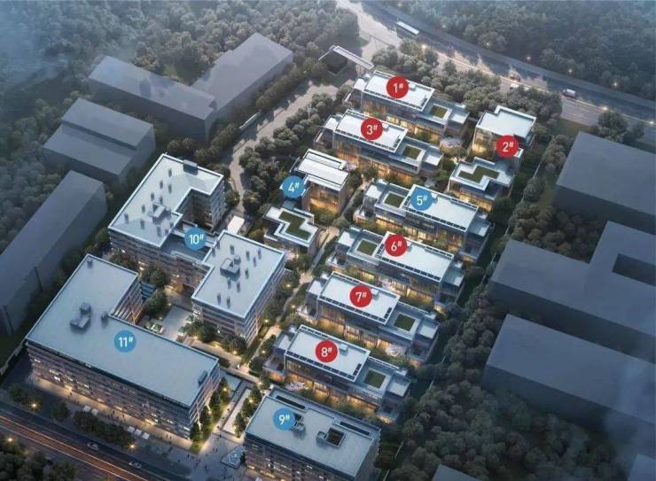 体量:总建筑面积约5.6万㎡,容积率1.8,规划9栋楼宇,含11席办公(建面约445-590㎡)及2席商业(建面约302-328㎡),绿化率25%