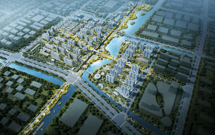 0m滨水公园:沿河道打造亲水步道、观景平台、生态湿地;