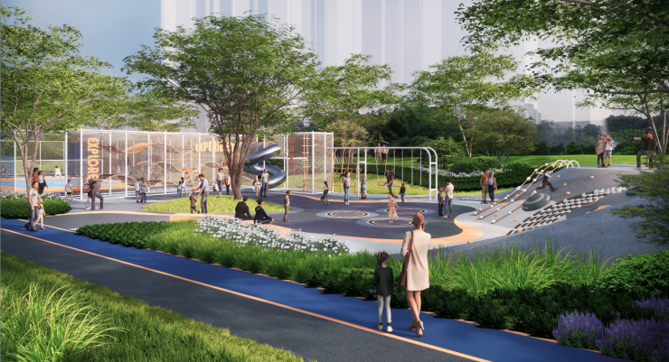 项目核心亮点为约20万平方米双主题滨水公园,相当于25个标准足球场,是上海中环内罕见的“公园导向型”社区: