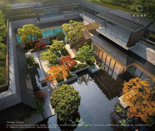 以舒展的东方屋面线条勾勒大宅气度;垂帘如“冕旒”轻悬,既为照壁屏隔喧嚣,亦在星光与定制灯光交织下流淌尊崇光韵,如凤凰尾羽拂过金鸡湖上。