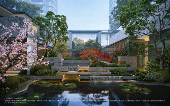 将水系蔓延至架空层及各个景观节点,漫赏滨湖水岸生活体验,名园盛韵的环秀池庭。