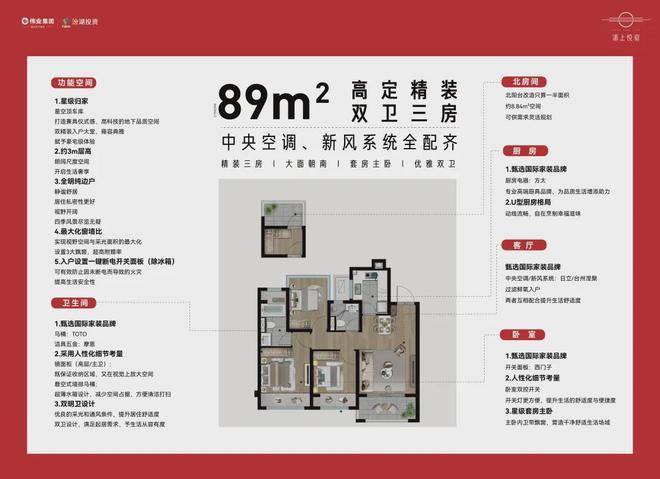 而少量的约89㎡户型更是做到了市场上罕见的双明卫三房,全部精装交付,配置了中央空调+新风系统,是年轻置业人群的不错选择!