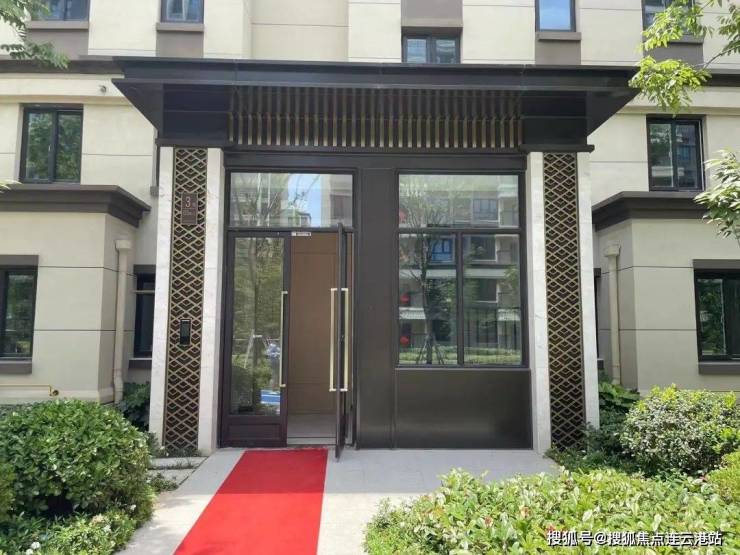 单元入户门是中式风格,庄重大气。交付的每栋楼门前都铺设了红地毯,十分喜庆,一梯两户。