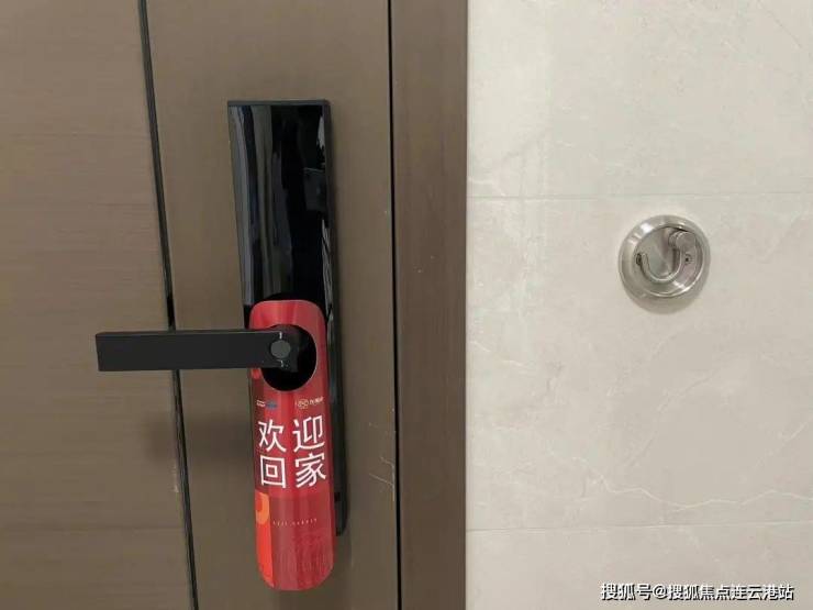 室内入户门,是指纹密码锁,旁边还有挂钩,进门很方便。