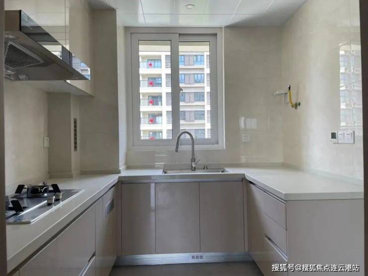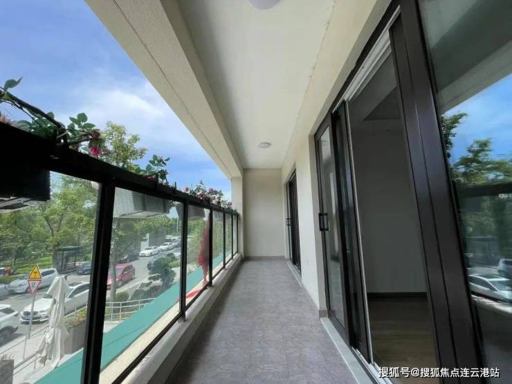 先看一下小户,客厅采光很好,因为洋房低楼层,视野也很好,而且推开阳台的门,就能感受到风浪袭来。