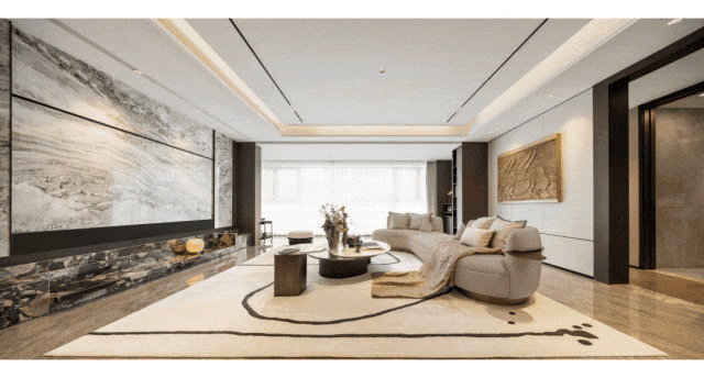 室内空间营造注重通透与开阔感,3.1米层高结合悬浮吊顶,有效避免压抑,奠定明亮基调。
