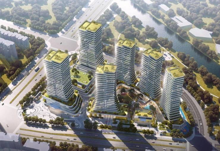 规划6栋高层(含4栋商业大平层、1栋星级酒店、1栋商务办公)