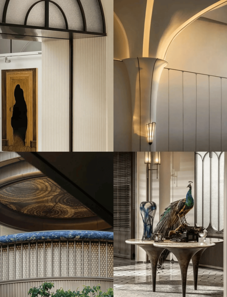 全屋岩板墙、水波纹移门、香槟金弧顶,彰显品质感。