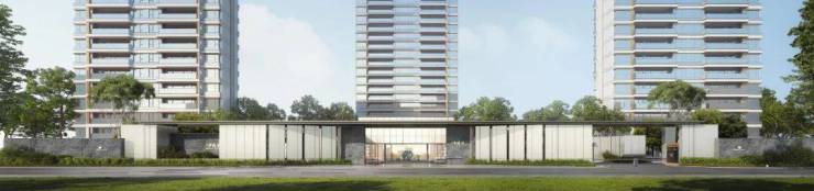 狮山金茂府以现代化镜像立面传承府系经典塔冠与对称美学,于立面造型上优化升级,现代美学立面进阶,以铝板及玻璃为主要材质,高窗地比营造光影美学,主材料玻璃幕墙,营造出时尚现代的氛围感,以光影哲思写意现代建筑美学。