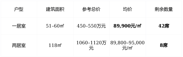 剩余房源 : 总计不足50席 , 118㎡两房仅剩个位数 , 抢购节奏加快 ;