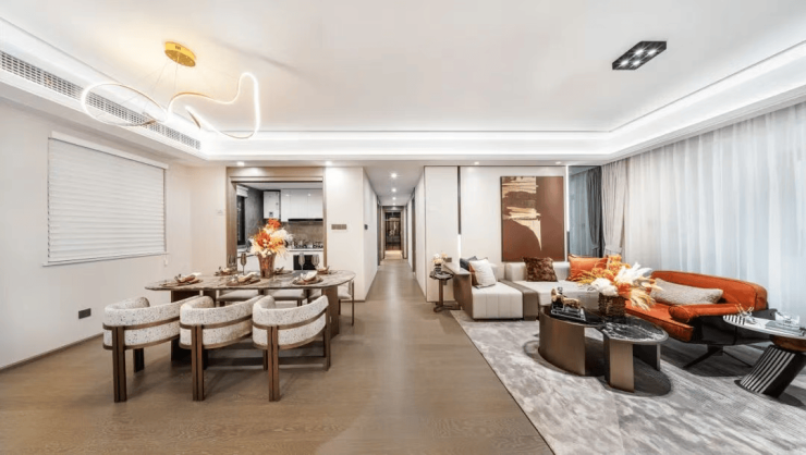 138㎡四室两厅两卫:U型厨房 + 主卧套房设计