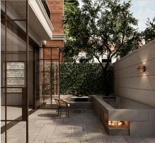 社区配建约1200㎡下沉式庭院会所,含恒温泳池、健身房、行政酒廊、茶室等,提供“金钥匙”高端物业服务,包括24小时礼宾、私宴定制等。