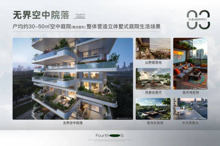 传统四代宅的革新多聚焦于“空中庭院”的物理形态,而蠡棠森屿则首创了FourthOS.四代生态系统,以八大维度重构了居住的底层逻辑。