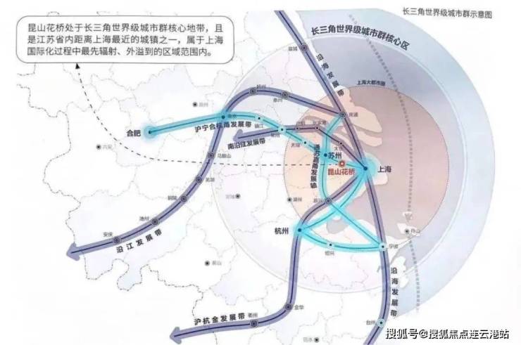 城市发展,交通先行。上海地铁11号线加速了花桥上海两地连接;沪宁高速、312国道、上海绕城高速、地铁S1号线(建设中)交汇……同城化深入发展,承接着更多上海的外溢需求。