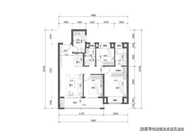 户型解析:轻奢改善产品,面积不过百却做到了3房2厅2卫的设计,户型方正,全明通透,采光充足,同时做到了三开间朝南的布局和南向联通双阳台设计。