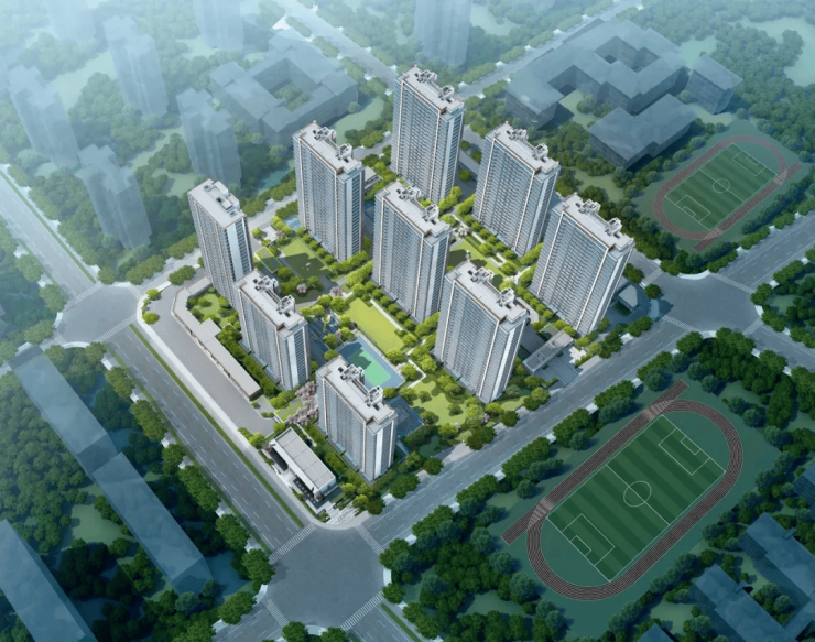 项目规模:总建筑面积约14.35万平方米,规划9栋高层住宅(20-26层)及1栋公租房,共918户。