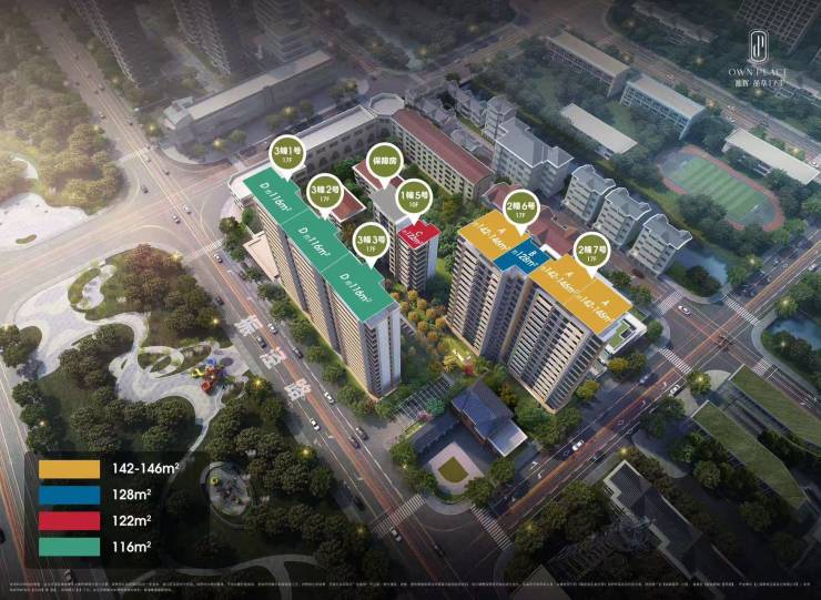主力户型 :建面约 116–146㎡ ,全为 三房至四房改善型产品 ,无小户型,户户纯正,拒绝“凑数设计”。
