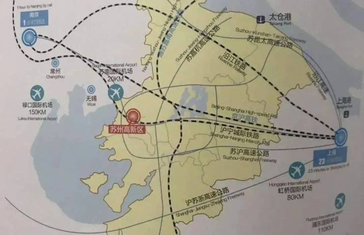 城际交通:距新区火车站约1公里,距苏州西站3公里,6号线、12号线(近期)、9号线(近期)