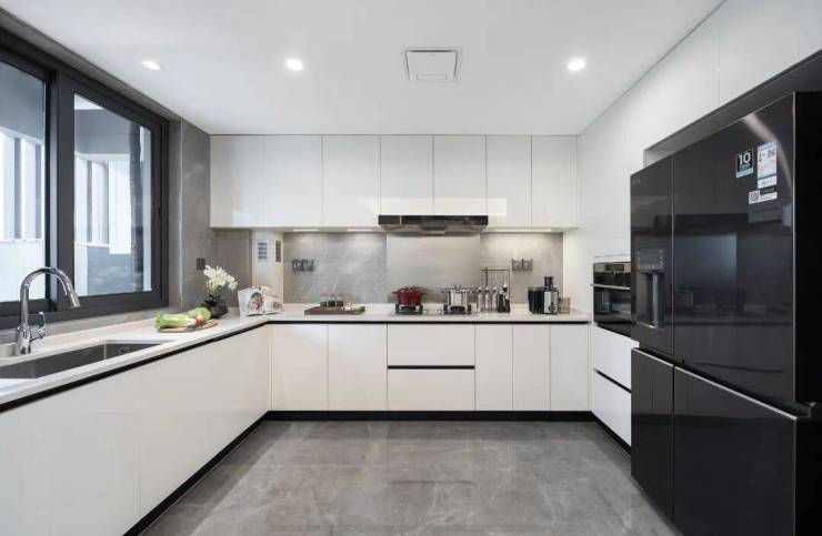 厨房配置德国AEG高端三件套--燃气灶、油烟机、洗碗机,行业七星级服务认证安吉尔前端+末端双向净水器,饮用水和生活用水同步净化,更有燃气报警系统、水浸探测器,凉霸等第一时间护航厨房安全;