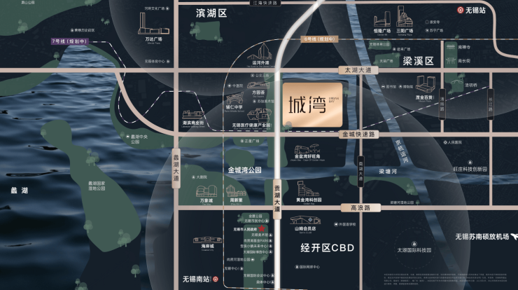 贡湖大道、蠡湖大道、太湖大道、金城快速路等路网通达三区;紧邻规划中地铁站点。
