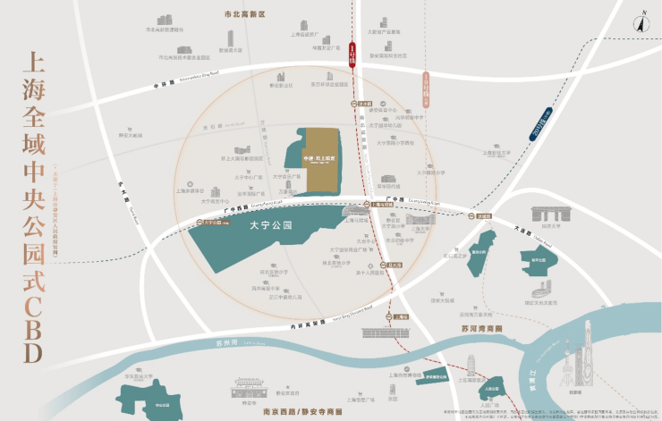 中建玖上琅宸的交通优势同样不容忽视。项目附近有三轨三高架的交通网络,紧邻地铁1号线延长路站和7号线大宁路站,未来规划中的19号线也将经过此地,为居民提供了便捷的地铁出行选择。此外,南北高架、内环高架和中环高架三条城市主干道围绕项目周边,无论是自驾出行还是乘坐公共交通,都能轻松抵达城市的各个角落。