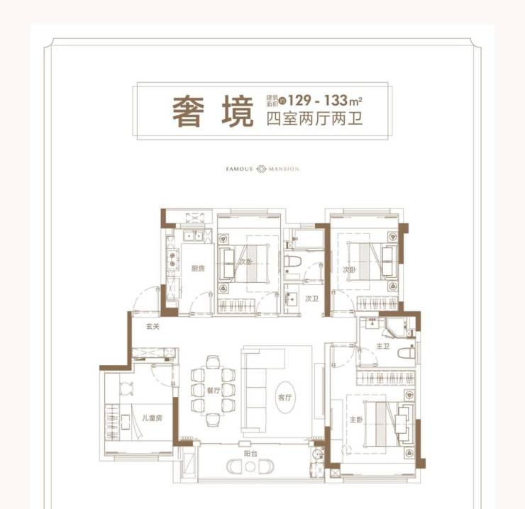 129-133㎡四房:总价约525-590万