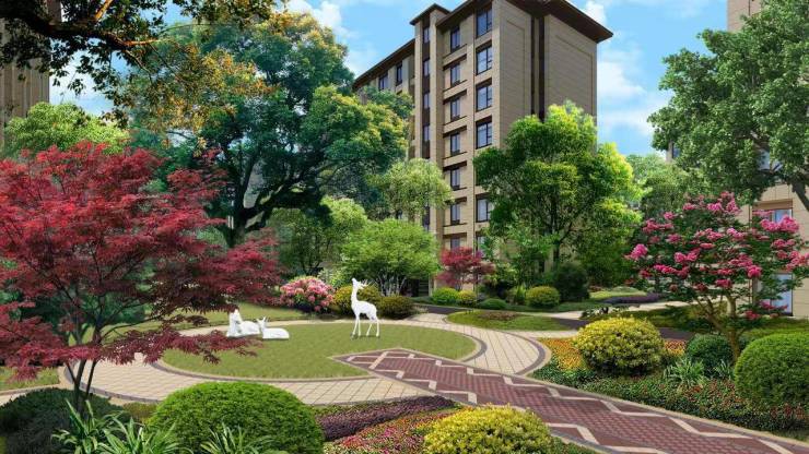 社区绿化:种植日本进口罗汉松、台湾云波冬青等名贵树种,打造"九重归家臻境"主题景观轴