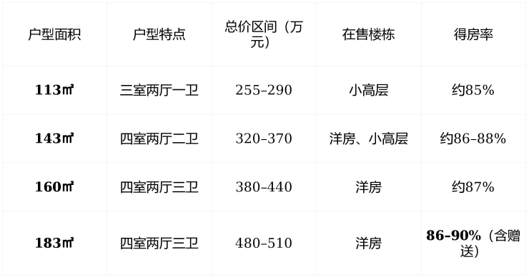 ✅ 温馨提示 : 183㎡洋房 为全盘稀缺户型,仅余少量南向房源,建议优先锁定 双阳台+主卧套房 组合。