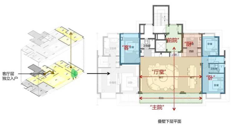「L型墅:平层宽厅+复式墅感」