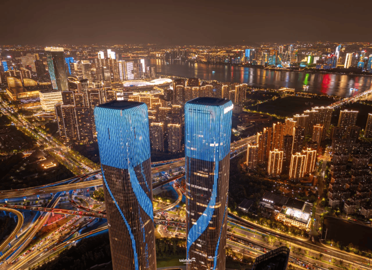 注:项目为滨江核心区唯一在售超高层江景现房写字楼,顶部双塔连体结构形成60米“云顶之门”,系杭州亚运会官方指定城市形象展示点