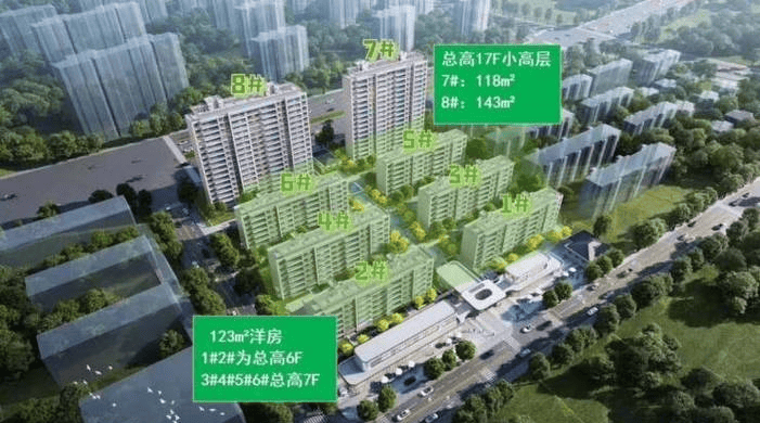 规模:8栋楼共296户,含6-7层洋房和17层小高层
