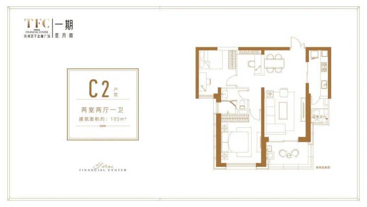 105㎡(2室2厅1卫):南朝向,紧凑刚需型布局