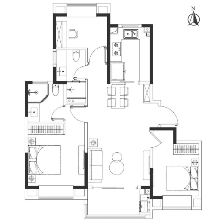 所有户型均注重采光与实用性,得房率约73%-75%。其中90㎡两房采用"双开间朝南+全明通透"的经典布局,最大化利用每一寸空间;175㎡大四房则以四开间朝南、3.1米层高和270°环幕采光,诠释改善型住宅的终极形态