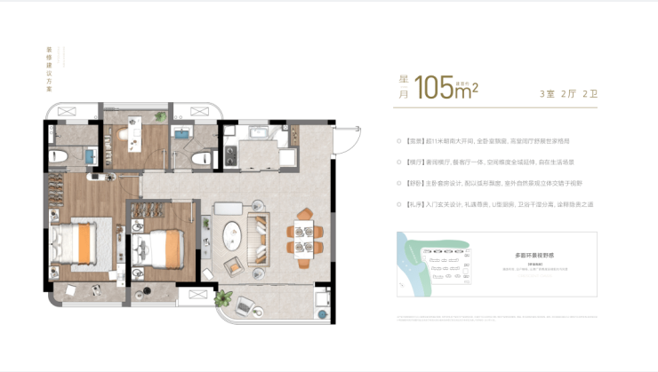 128㎡三房两厅两卫:经典竖厅设计,主卧套房带独立衣帽间