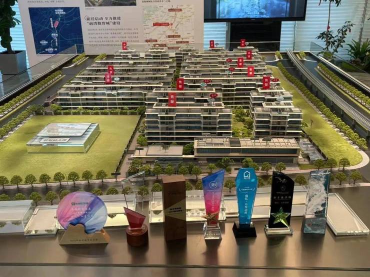 容积率1.3,规划17栋四层/六层叠墅,外立面采用银灰色铝板+玻璃幕墙,融入宋式美学元素(戗角飞檐、金色挑檐)