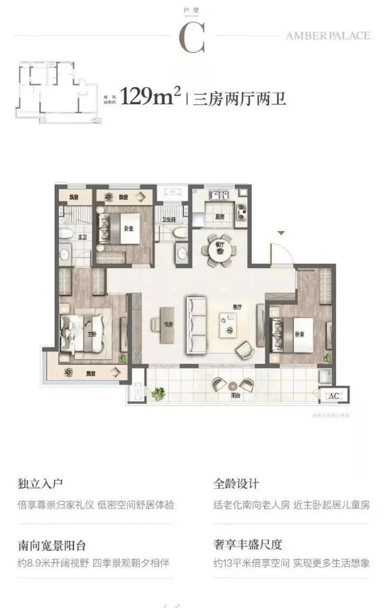 特别提示:129㎡户型采用"双阳台"设计,采光通风极佳