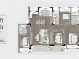 LDKB客餐厨阳台一体化的布局映入眼帘,让公共区域间和谐呼应。约6.6米的尺度横厅和超大面积的落地窗,仿佛为家安装了一块“超大屏”,四季风景尽收眼底。