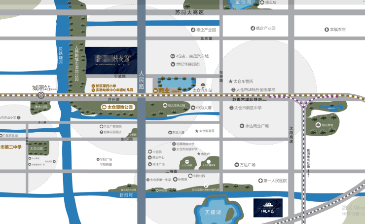 地理位置 :位于太仓城北板块,紧邻 盐铁塘湿地风光带 ,西侧即为生态绿地,宜居属性突出