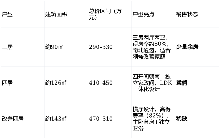💰 在售情况:主力户型清盘中,总价区间清晰