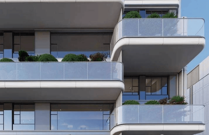 外立面:铝板+玻璃栏板材质,搭配灰金色调曲线,尽显奢华气质