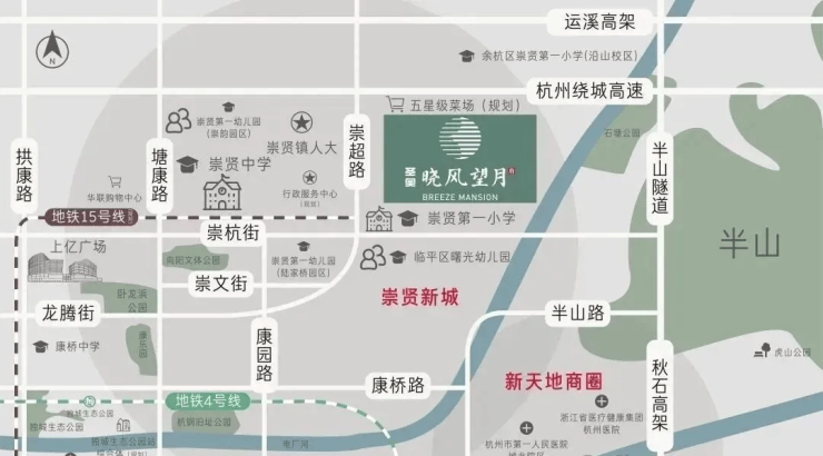 轨道交通:临近规划中的地铁15号线崇贤站,步行距离约300-500米。