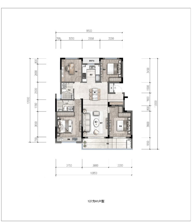 户型特点:127㎡户型采用“四叶草”布局,139㎡户型为南横厅设计,得房率高达92%-95%。