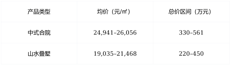 在售产品 :中式合院 × 山水叠墅,均为 毛坯交付 ,70年产权,得房率超95%。