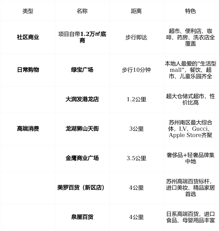 🌟 生活闭环 :从买菜、遛娃、购物到高端消费, 1公里内满足日常,3公里覆盖全城顶级资源