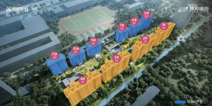 臻和璟园打造了10栋8-11F洋房,容积率约1.6,是板块最低,仅270户,绝对低密又宜居。