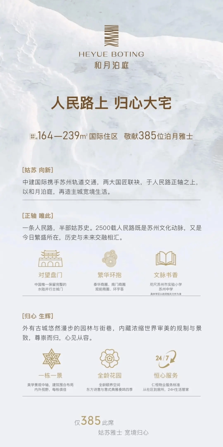 地段稀缺性:姑苏核心区仅存的全新住宅地块,人民路沿线新房已断供多年,和月泊庭是近十年内城唯一可售新盘,具有不可再生价值