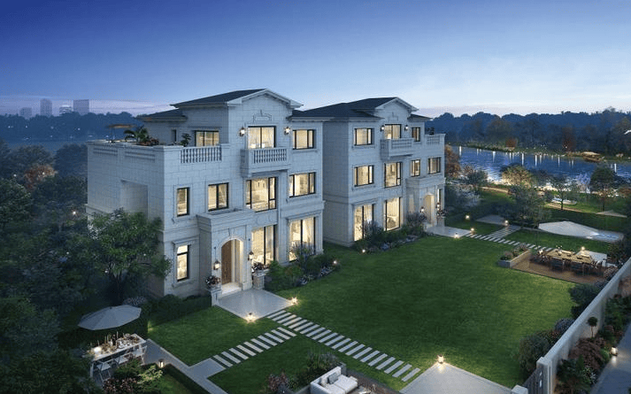 法式大宅:建面330-700㎡,配备私家庭院、黄金麻石材立面及地下挑高社交空间