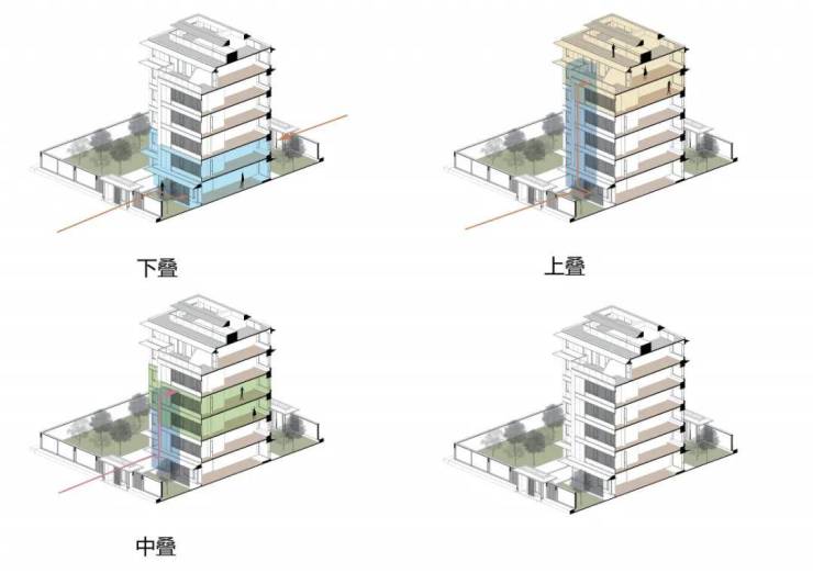 下叠南院,于城市繁芯中,还原一方净土。将梅雨天气考虑其中,取消地下室的设计,规避阴暗、返潮湿滑的情况。