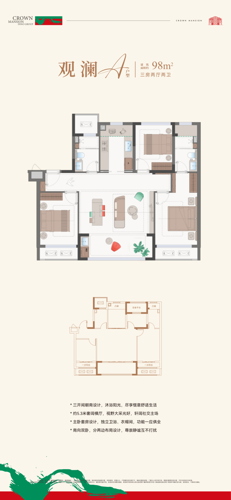 💡购房提示:当前主推107㎡三房两卫户型,5.3米横厅+套房主卧设计,空间利用率高,适合三口之家或三代同堂;开发商统一认证热线:400-852-9793(建议提前预约看房,享免费专车接送);暂无明显促销,价…