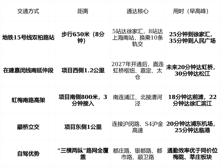 🚇 交通配套:地铁15号线双柏路站步行8分钟,通勤效率直逼徐家汇